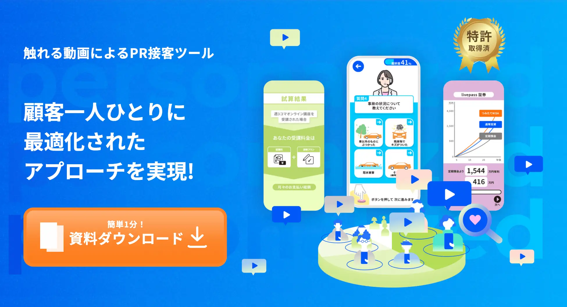 livepassは創業以来、顧客一人ひとりの体験(CX)を大切にし、企業の効率や論理ではなく「顧客にとって本当の価値は何か」を問い続けてきました。その姿勢のもと開発したのが、独自の特許技術を基盤としたパーソナライズ動画ソリューションです。個人情報を安全に取り扱いながら、柔軟な接客体験を実現します。